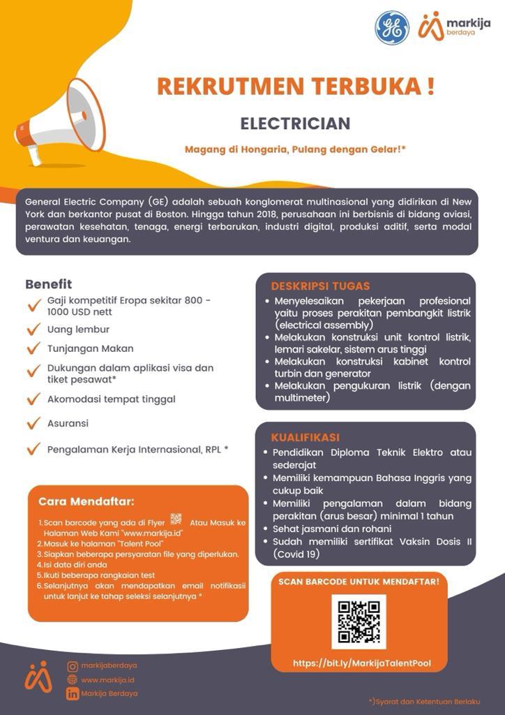 Terkait adanya Program Magang Vokasi di General Electrics, Hungaria yang terbuka untuk mahasiswa dan alumni polmed, yaitu :